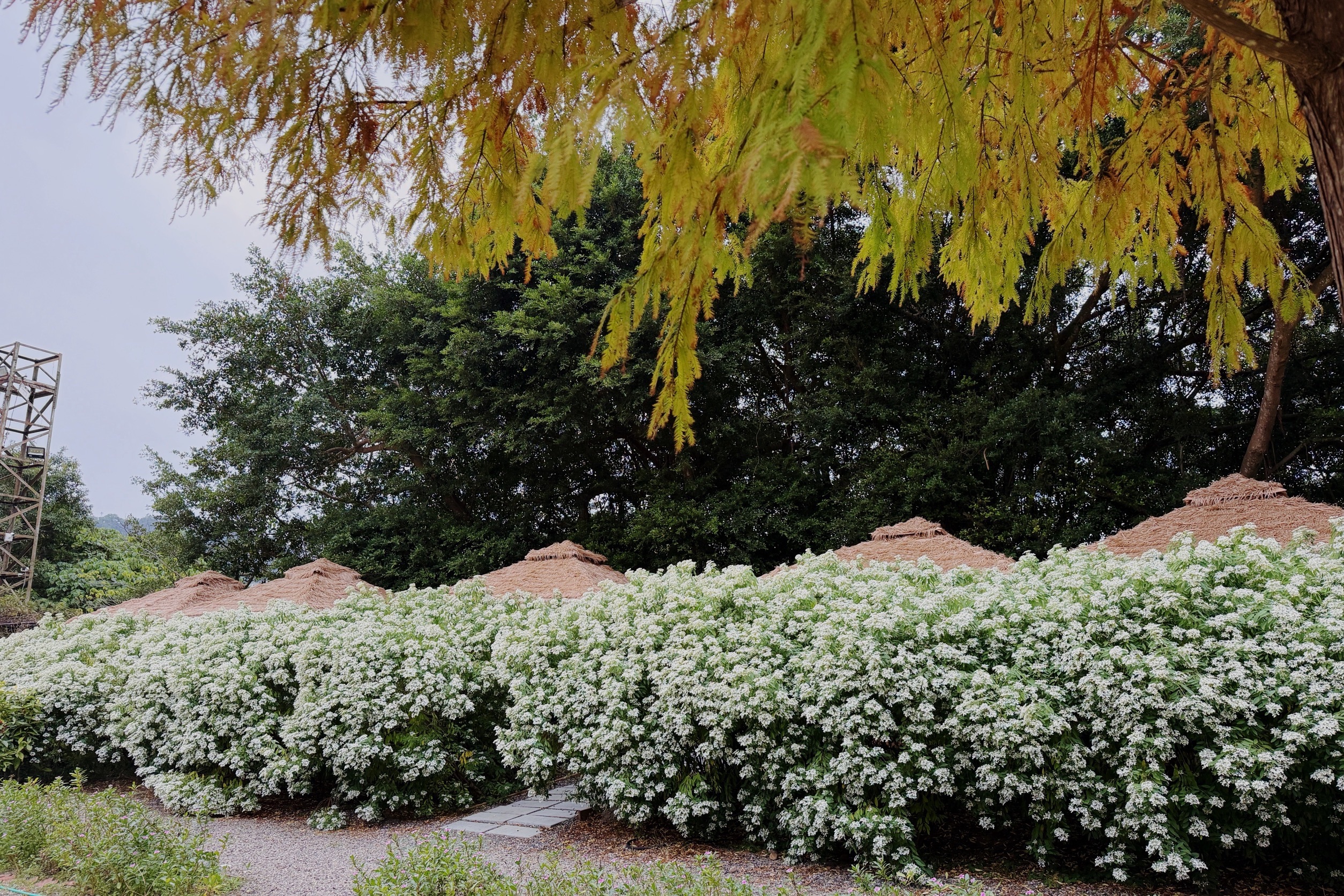 圖說:青青食尚花園會館園區白雪木盛開。