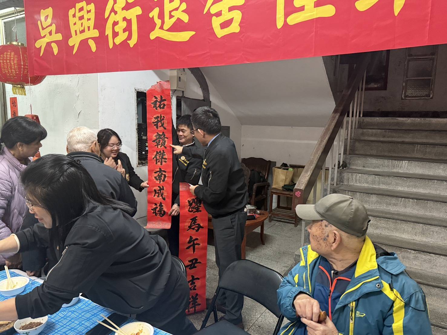 當眾人團團圍坐,看著處長親炒的熱菜、志工準備的佳肴,退舍長輩們笑得合不攏嘴,直呼:「這就是過年的味道!」原本安靜、斑駁的吳興街退員宿舍,因為這群年輕世代的加入,重新充滿了生命的脈動。這份由榮服處、志工、學生與役男共同接力的愛心,如同冬日裡的一抹陽光,暖熱了老榮民們的心田。