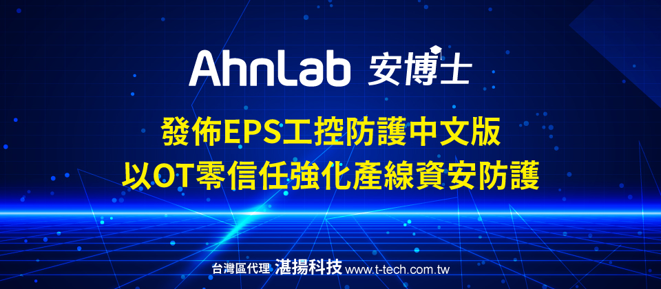 台灣總代理 湛揚科技為協助企業加速導入 OT 零信任安全架構,EPS 中文版上市期間將提供免費專業諮詢與產品試用申請服務,協助企業評估導入效益與最佳部署模式。欲瞭解更多產品資訊或申請試用,歡迎來電02-25151585或瀏覽湛揚科技官網www.t-tech.com.tw 。AhnLab安博士將與湛揚科技攜手持續深耕台灣市場,協助企業建構永續﹑安全且穩定的營運環境。