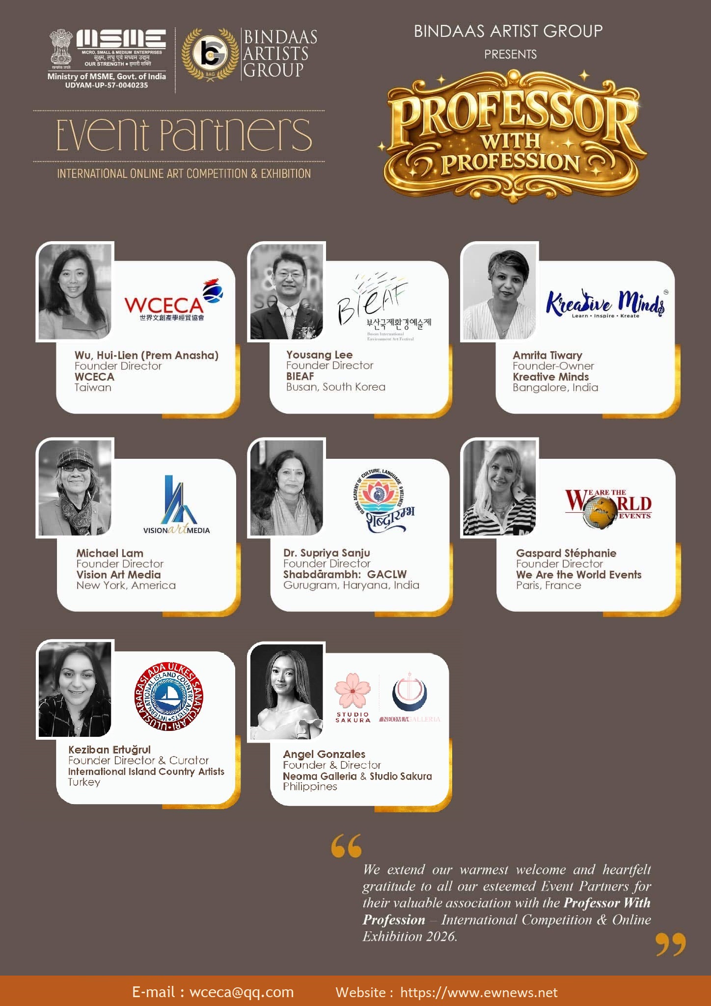 全球合作夥伴 “Professor With Profession”「藝境.職心」 2026 印度國際藝術競賽與線上展