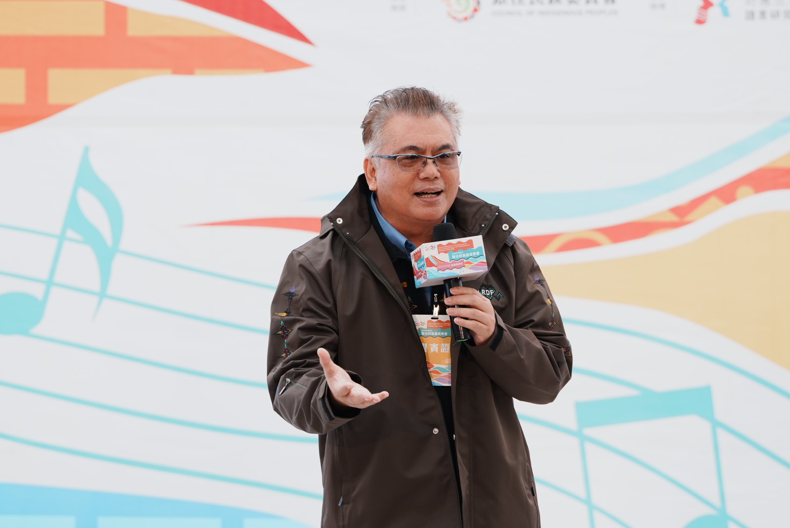 圖說:原語會董事長俄鄧‧殷艾 Eteng Ingay 親臨現場致詞,強調透過跨世代音樂對話,讓族語在城市中流動,紮根日常生活。