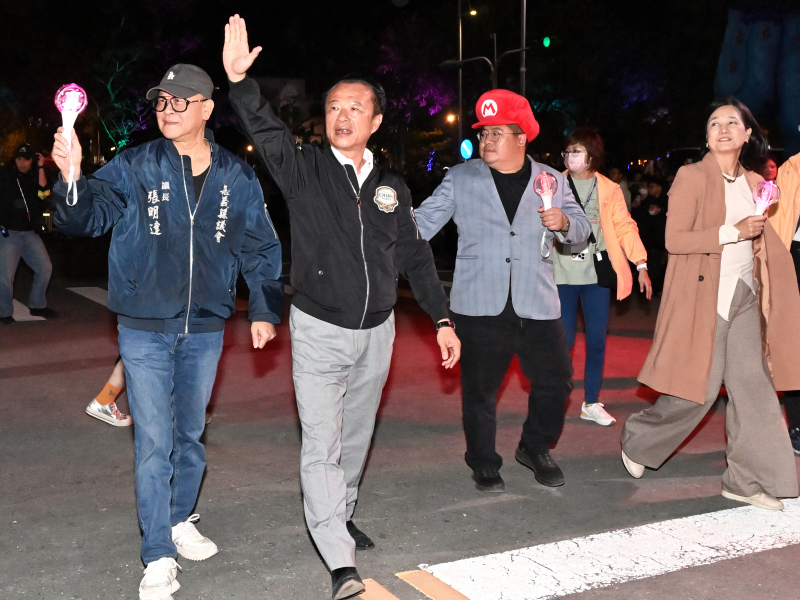 嘉義縣政府指出,2026台灣燈會以「光躍台灣・點亮嘉義」為主題,7日晚間的無人機秀與大遊行將這股展期熱度推向高峰,從夜空中向幕後英雄致敬,到街道上匯聚跨族群、跨世代、跨國界的遊行隊伍,展現嘉義承辦台灣燈會的熱情與能量,也讓民眾感受榮耀與希望交織的氛圍。