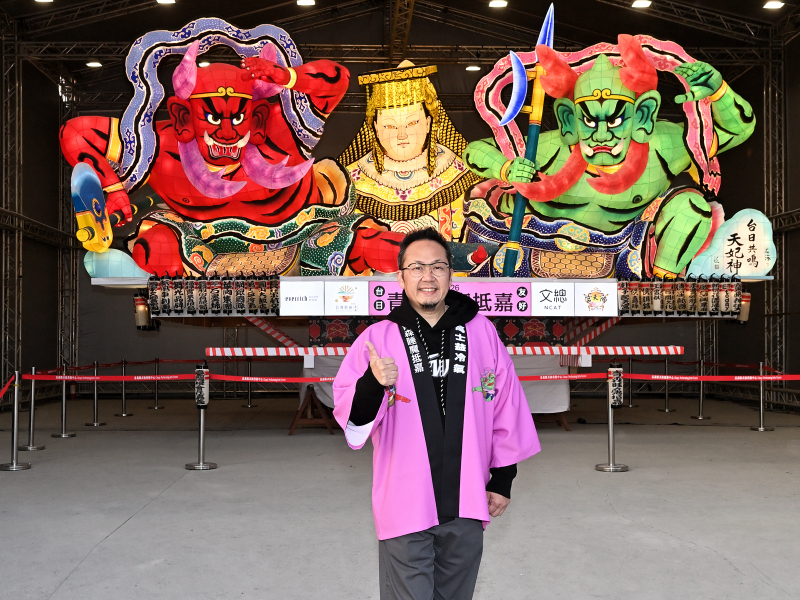 文化總會李厚慶秘書長說,今年適逢311日本東北大地震15年,文總邀請來自青森的睡魔師走進台灣,用在地的信仰與文化創作大型睡魔燈籠,「2026 台日友好 青森睡魔抵嘉」將持續在台灣燈會展出至3月15日,期待這座睡魔燈籠長久照亮台日之間的文化連結,讓彼此的友誼持續延伸。