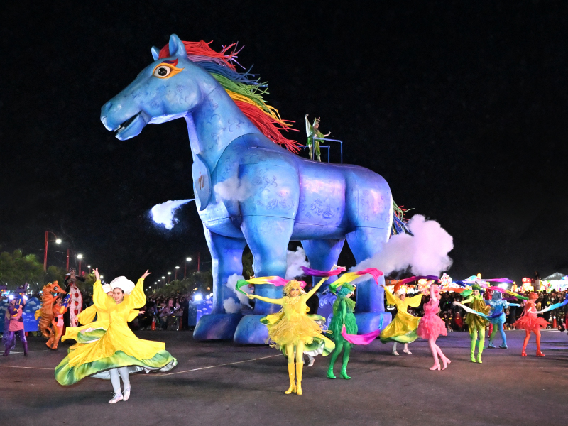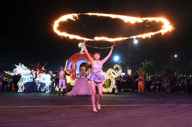 隊伍壓軸迎來萬眾矚目的文總「青森睡魔抵嘉」、紙風車劇團巨型行動藝術裝置雨馬與即將成真火舞團,讓整場遊行在歡呼聲中劃下句點。