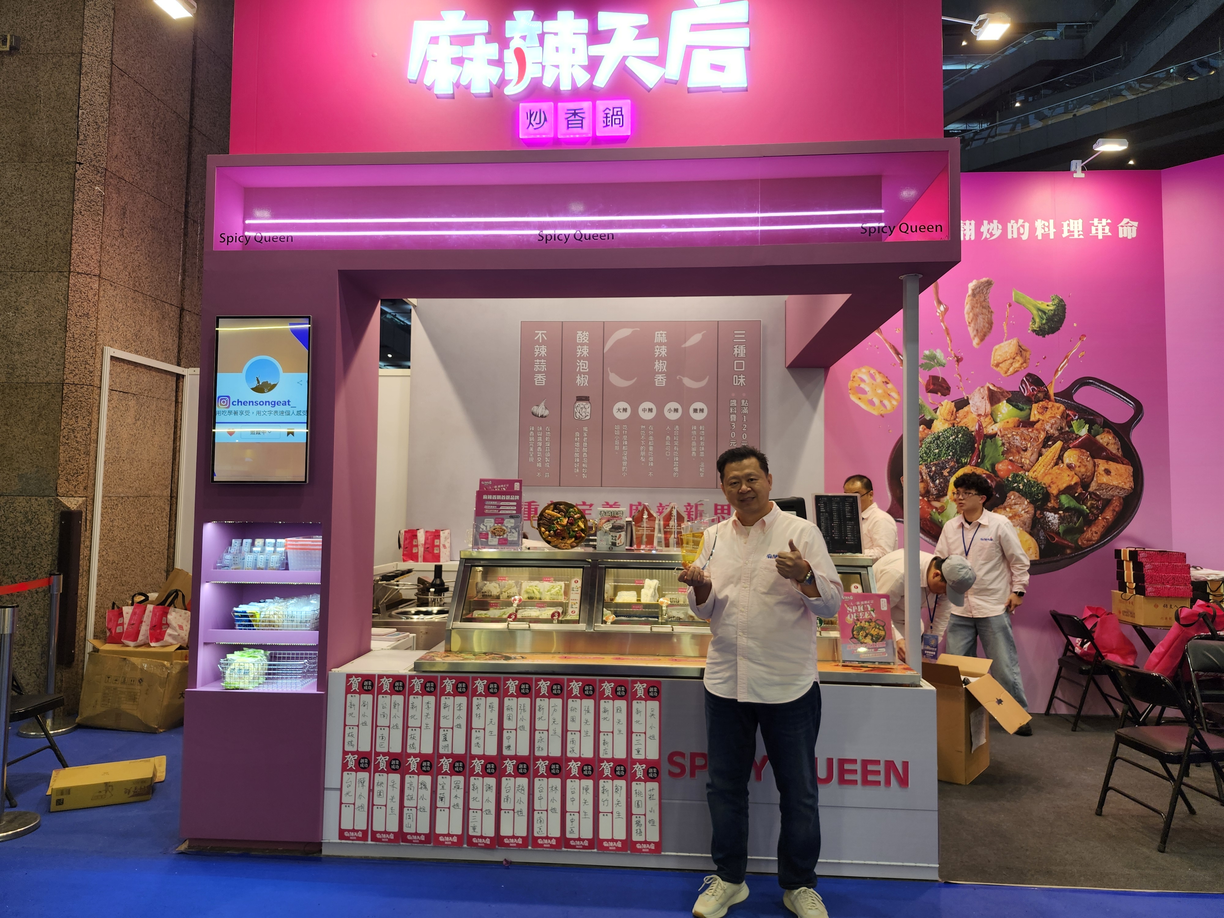 在加盟招商模式方面,此次展覽呈現出相當多元的創業選擇,從小資創業到高額加盟投資皆有代表品牌。以小資創業為例,加盟費用多落在50萬元至150萬元之間。其中「麻辣天后炒香鍋」透過機械手臂自動翻炒設備降低人力需求,加盟金約145萬元,這次展覽即收到40餘筆加盟預約單;而主打攤車型創業模式的「馬蔥餅」,創業門檻不到50萬元,也收到46筆加盟意向書,顯示市場小資族創業動能依然強勁。