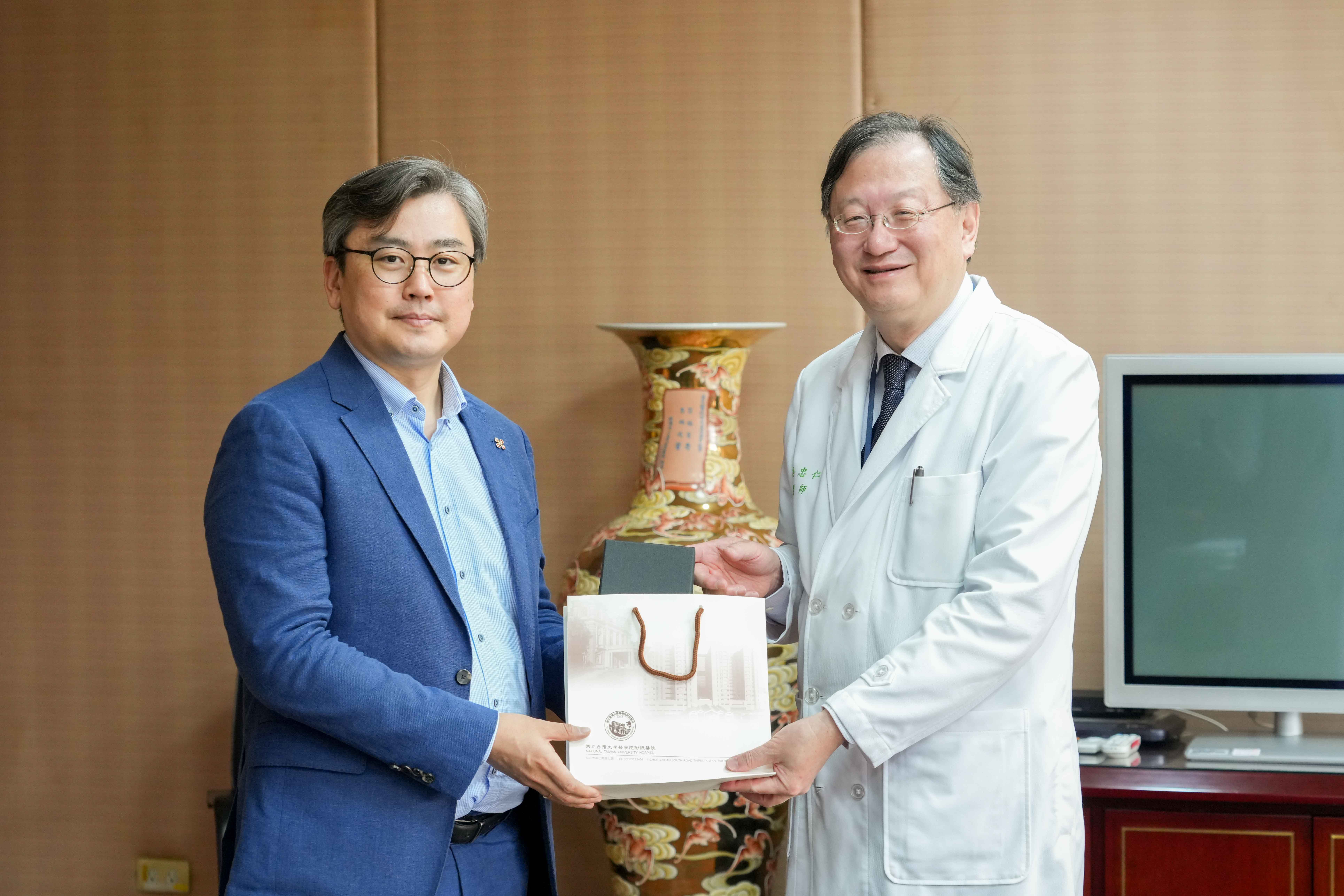 20260318跨越國界、延續大愛 臺大醫院展現醫療外交與醫院社會責任 執行衛福部 GMISS 計畫屆滿20載 整新救護車馳援蒙古國-余忠仁院長致贈本院紀念禮品 圖/臺大醫院提供