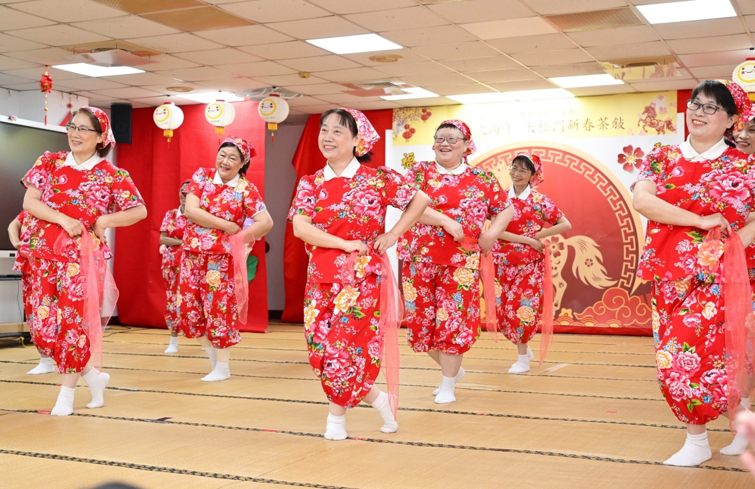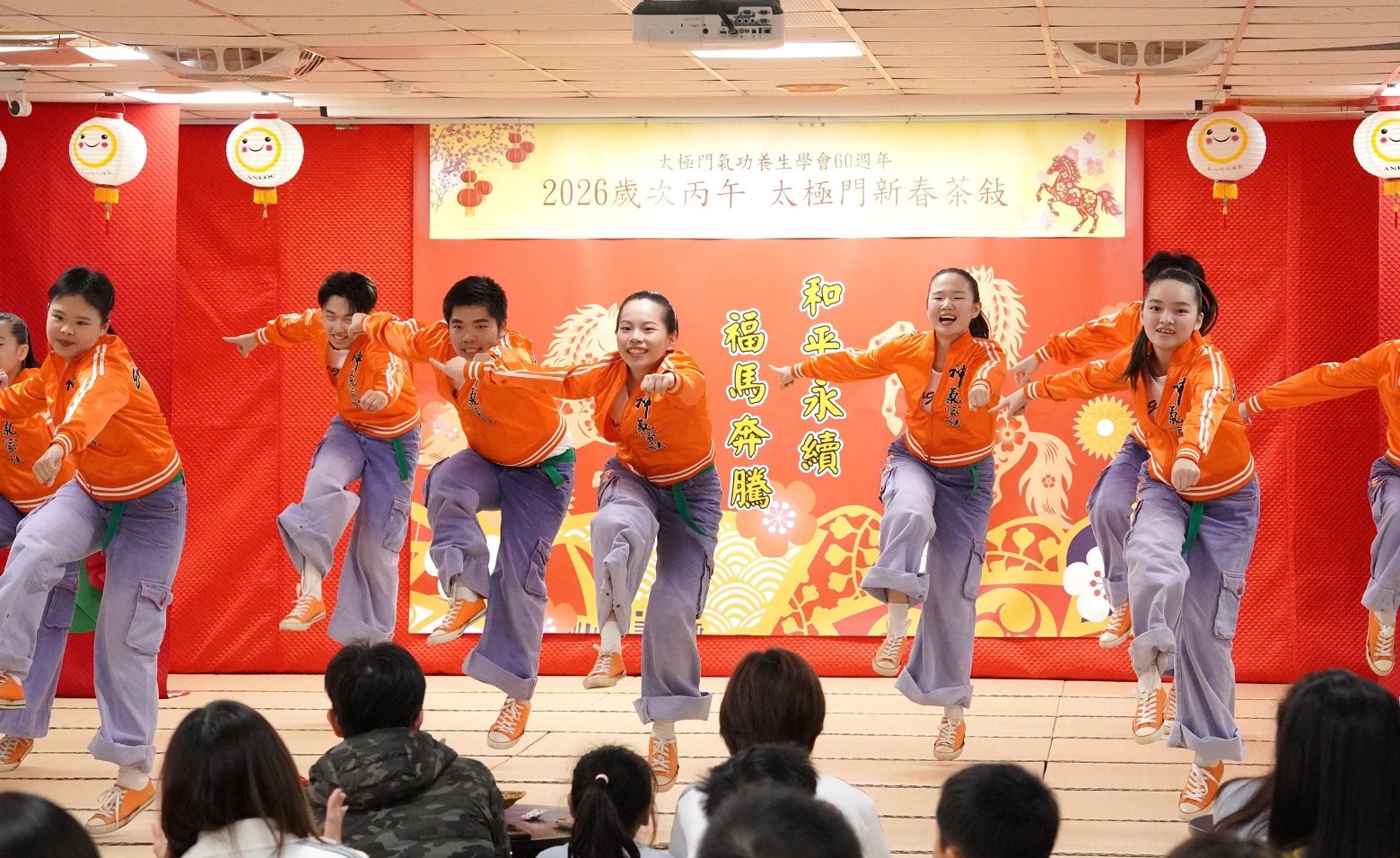 活動現場以悠揚的中國笛《翠堤春曉》揭開序幕;活力四射的Energy Boys & Energy Girls演出「龍馬奔騰 活力無限」,展現不怕困難,直達目標的自信;俏皮可愛的「足爽」(台語ㄊㄩㄥˇ)寶寶,則演出「歡樂送五寶」,展現熱情與活力;合唱團以溫暖歌聲傳遞新春祝福;樂活土風舞展演溫暖人心,祝福大家馬上健康、馬上幸褔!「阿嬤古早味五寶豆花本舖」讓來賓體驗到濃厚的太極文化;「采風巷」更呈現太極門多年來走訪五大洲、推動愛與和平的良心文化。掌門人洪道子博士,也是聯合國「國際良心日」、「國際希望日」的倡議者,帶領弟子足跡遍及122個國家,願你我攜手共同傳遞正向能量,為世界注入更多光明與希望。