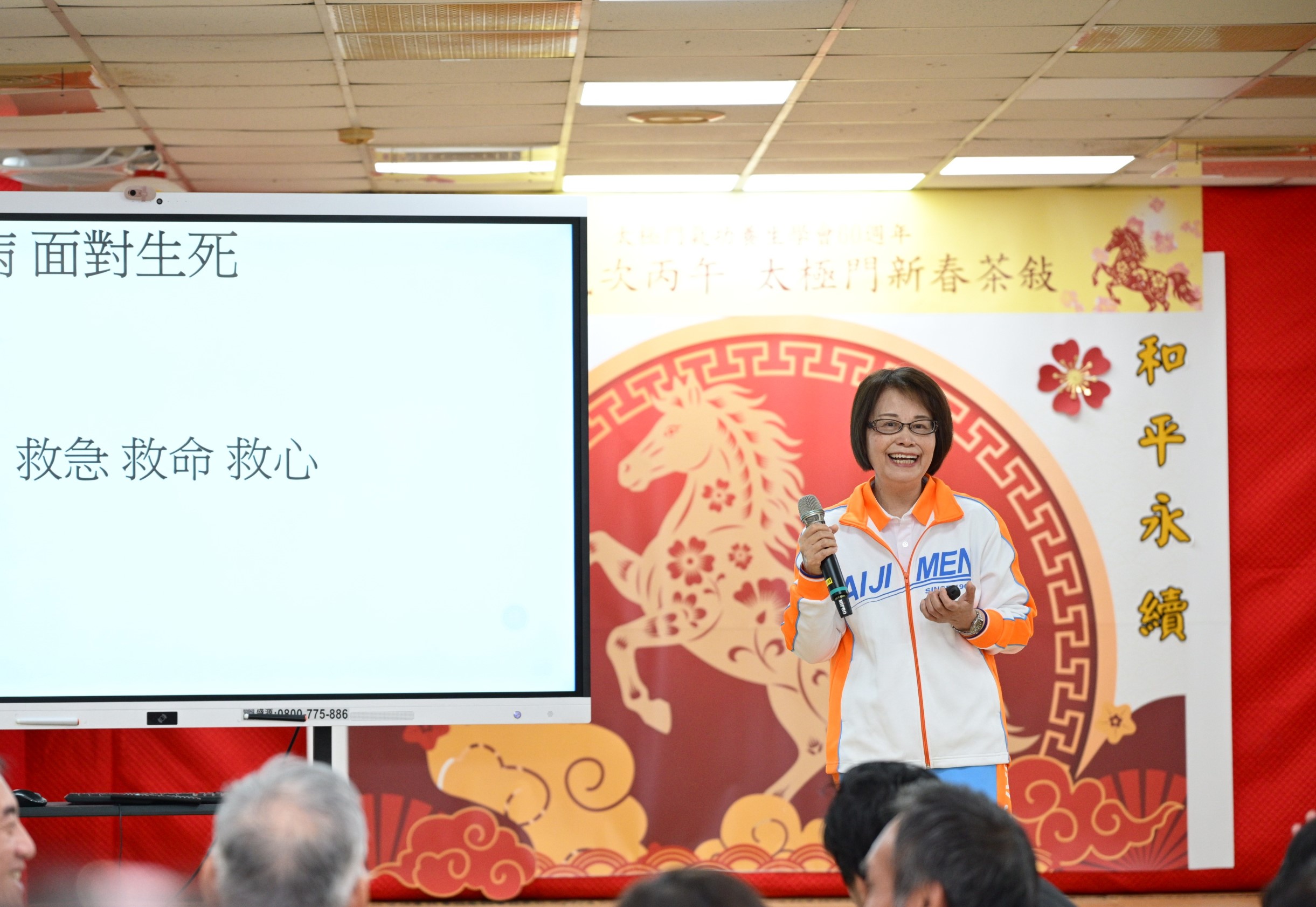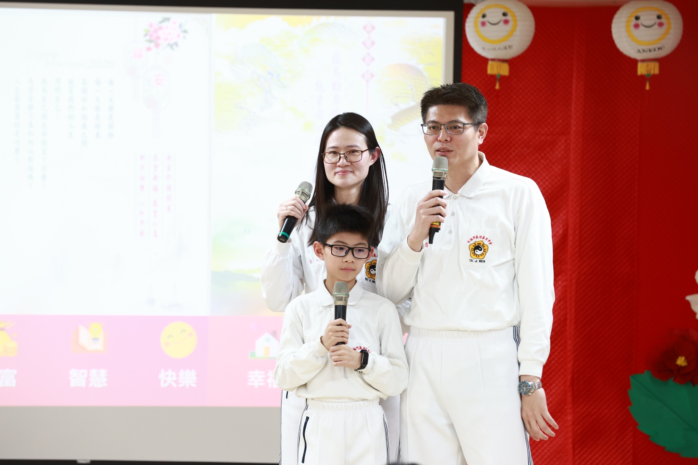 小兒科醫師陳幸津以「白袍下的正能量 細胞在跳舞」分享她從西醫視角解開氣功的奧秘,每天啟動細胞活化的自癒力,讓全家練氣養生改變一生。邁入「高齡社會」的台灣,失智症有年輕化的趨勢!風濕免疫科醫師李蒔青的「預防失智症」講座提到,透過穩定作息、深長呼吸、保持好心情,與適合自己的運動,身心會慢慢回到平衡,太極門氣功正好符合預防失智的需求。財務博士李文清與法務智權徐小涵夫妻則以「人生加碼 幸福翻倍」為題,引導大家在職場領域如何進行風險管理,在婚姻上發揮1+1大於2的幸福秘寶。來賓英文老師表示,感受到福氣滿滿和氣滿滿,這裡的人都很和善、正向,小涵的親子分享很實在、有智慧,在太極門練功、修身養性,對家庭事業都很有幫助。