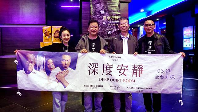 2.以行動支持優質國片,歐德集團陳國都董事長(右二)與《深度安靜》導演沈可尚(右一)、演員林依晨(左一)、監製瞿友寧(左二),電影包場活動合影。