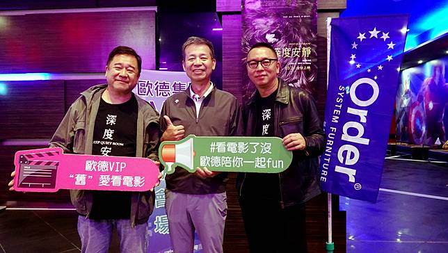 1.歐德集團舉辦舊客戶電影「深度安靜」觀影活動,陳國都董事長(中)與導演沈可尚(右)、監製瞿友寧(左)開心合影。