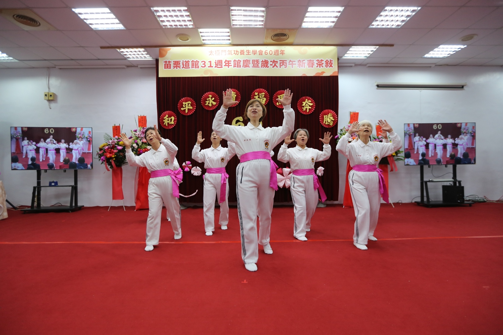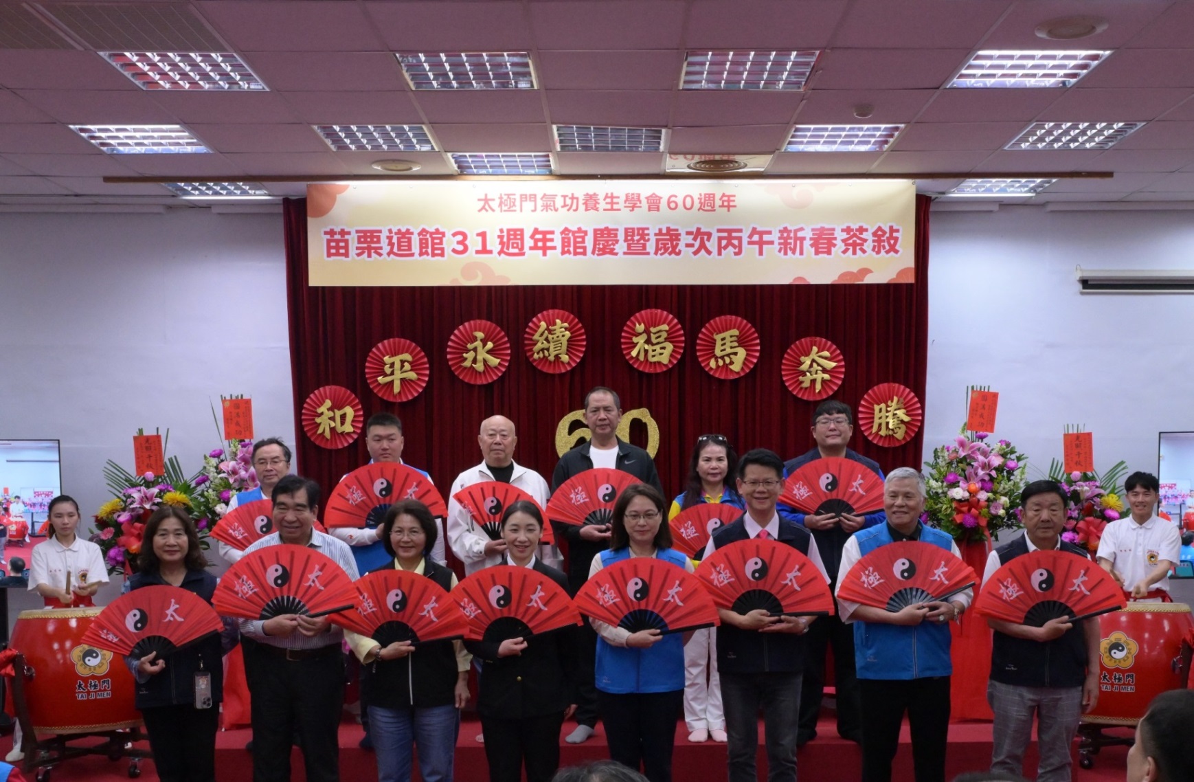 【記者張莞恩/苗栗報導】春回大地,萬象更新。今(2026)年欣逢太極門氣功養生學會60週年,更是苗栗道館深耕地方31週年的日子。太極門苗栗道館3月22日下午盛大舉行「31週年館慶暨歲次丙午新春茶敍」慶祝活動,現場貴賓雲集,苗栗縣副縣長賴香伶、縣政府社會處副處長邱苹臻、縣政府衛生局副局長古智誠、縣政府勞青處楊文東科長、立法委員陳超明的特助田文裕、立法委員邱鎮軍派曾秋桃代表出席、苗栗縣副議長張淑芬的助理曾瑞求、縣議員楊明燁、縣議員黃芳椿、縣議員陳永賢、縣議員鄭聚然、縣議員曾美露、縣議員邱毓興的秘書李宗憲、獅潭鄉鄉長劉淑能、大湖鄉鄉長黃惠琴、苗栗市長余文忠的秘書邱威鳴、苗栗市民代表謝長慶、苗栗市民代表劉秀蘭、苗栗市民代表劉鳳瑩、苗栗市民代表曾秋桃、三義鄉代表古子峯、苗栗市北苗里長楊丁垣、苗栗市文山里長邱義均、苗栗市福星里里長鄧兆詩、苗栗市南勢里里長葉永正、後龍鎮復興里里長吳發盛、頭份市和平里里長梁珍彗、2025 CRS全球華人公益大使陳宗聖、後龍鎮校椅社區發展協會理事長趙泰山及夫人劉秀琴、苗栗市維新里社區發展協會理事長楊雲亭、救國團苗栗縣真善美聯誼會創會長林麗鯤、縣議員參選人巫召清、縣議員參選人彭晧宇、縣議員參選人彭賢淳、縣議員參選人古文欽等人,地方仕紳及鄉親好友齊聚一堂共襄盛舉。