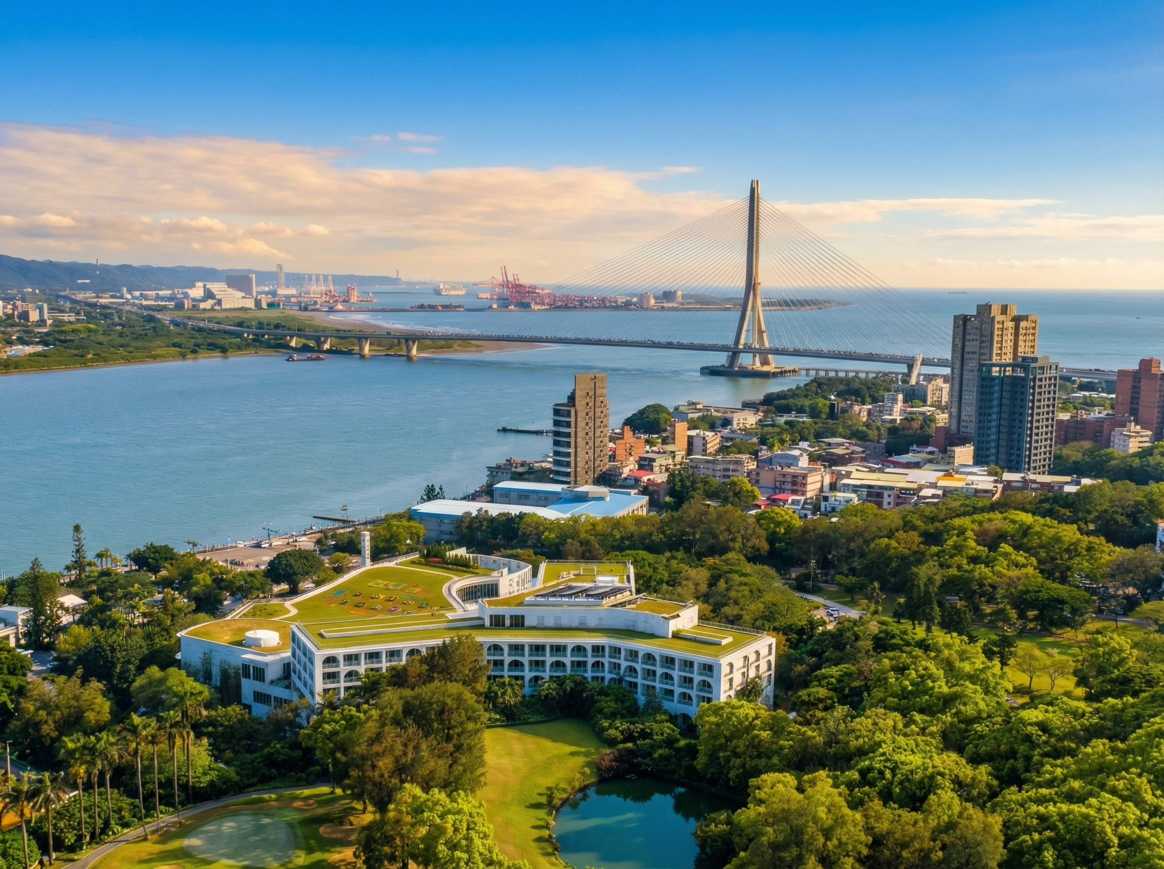 圖說:坐落於淡水河畔、擁有觀音山與夕陽美景的將捷金鬱金香酒店,以舒適雅致的環境與豐富多元的設施廣受旅客青睞。(將捷金鬱金香酒店提供)
