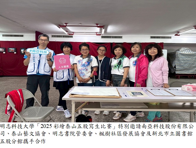明志科技大學與南亞科技股份有限公司共同主辦「2025彩繪泰山五股寫生比賽」,為推廣泰山區與五股區深厚的人文歷史與豐富的自然生態,活動於5月4日盛大登場,並聯合泰山藝文協會、明志書院管委會、楓樹社區發展協會、新北市立圖書館五股分館等在地單位攜手合作,打造一場兼具藝術性與在地文化深度的繪畫盛事。