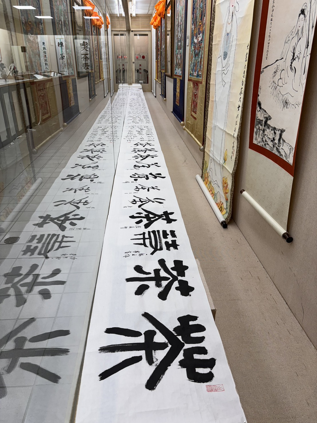 禪入書畫,喚醒本覺。新北市華梵大學舉辦的「禪茶書畫篆刻展」,將於12日閉幕撤展。自5月1日開幕展出迄今,已有近兩千名僧俗二眾,前往參觀書畫與篆刻作品。這項展覽展出華梵大學佛教藝術學系助理教授吳大仁、吳軒慧父女檔及其指導的25位學生之經典作品。其中吳大仁的一幅「禪茶兩忘」創意書法作品,太有創意,吸引許多僧眾慕名而來觀賞。目前距離撤展剩餘兩天,校長李天任呼籲大眾,把握機會蒞校參觀,以免向隅。