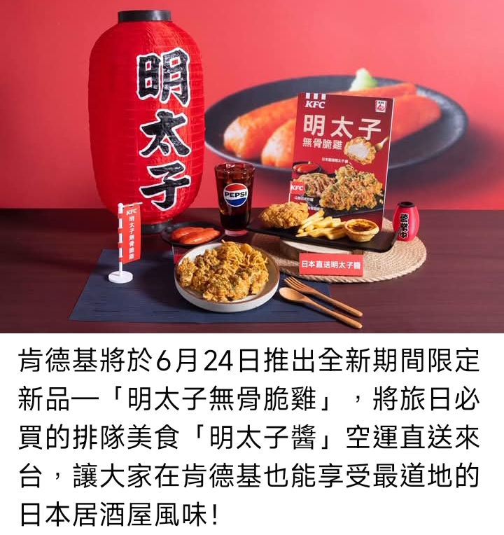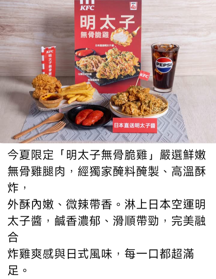 肯德基今夏最強新品「明太子無骨脆雞」日本排隊名物在肯德基就能吃到