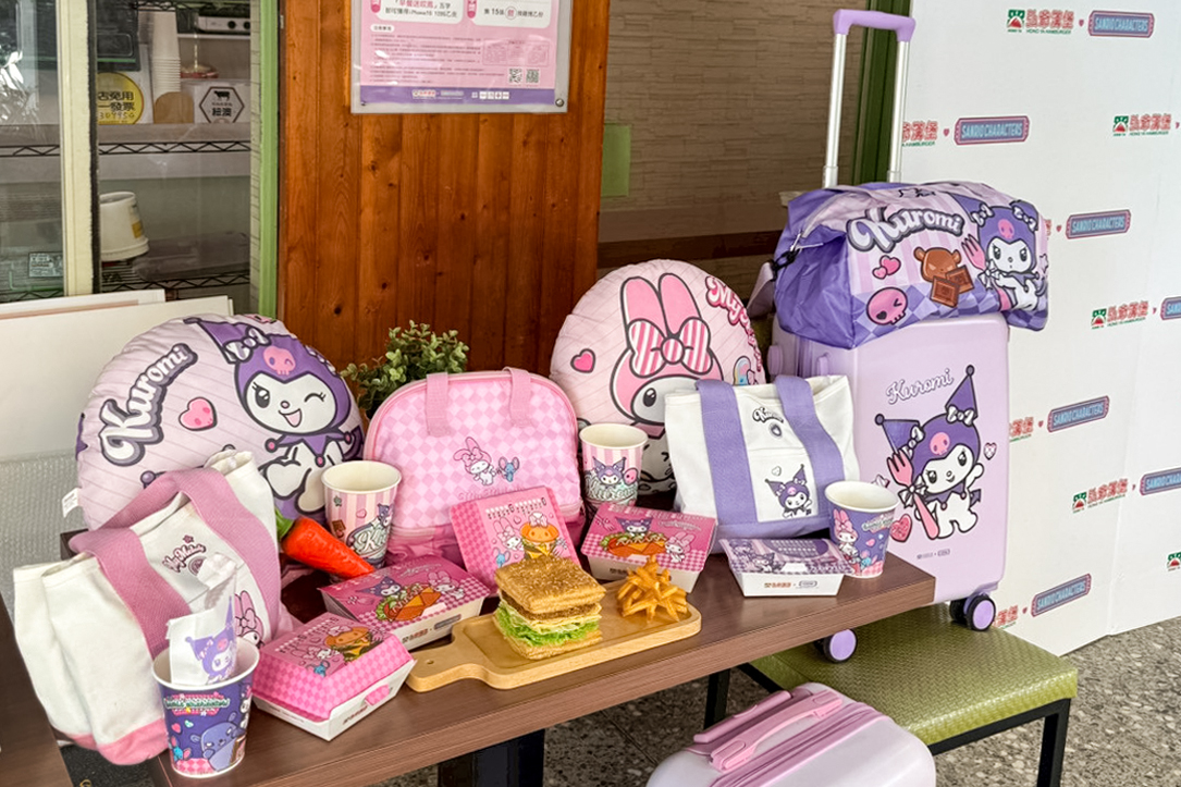 本次活動同步推出多款限量贈品,包括行李箱、旅行袋、保冷袋、抱枕、帆布包等。粉、紫雙色20吋行李箱印有可愛的美樂蒂與酷洛米圖樣,搭配可摺疊收納旅行袋,外出旅遊或週末小旅行都實用又吸睛。保冷袋與帆布包採多層結構設計,兼具造型與機能性,是粉絲絕對不容錯過的收藏逸品。