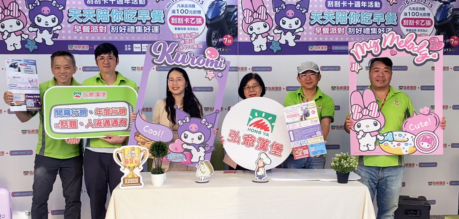 弘爺漢堡表示,今年是刮刮卡活動舉辦的第十個年頭,特別邀請超人氣三麗鷗角色「美樂蒂」與「酷洛米」攜手登場,以「早餐派對」為主題,打造萌力滿滿的用餐體驗。此次聯名不僅展現品牌年輕化的企圖心,更藉由IP合作強化品牌話題度,成功吸引喜愛可愛文化與收藏商品的族群。