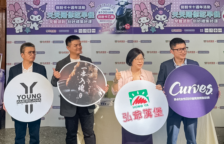 【林文強/新北市訊】台灣早午餐加盟第一品牌「弘爺漢堡」今年歡慶刮刮卡活動邁入第十週年!今年再度與日本三麗鷗強勢聯名,推出「美樂蒂、酷洛米天天陪你吃早餐」刮刮卡活動。自10月15日起至12月15日止,凡消費滿百元即可獲得限量刮刮卡乙張,張張有獎、驚喜不斷!總獎項高達400萬份,規模創品牌歷年之最,讓全台早餐控都能吃得開心、玩得盡興。