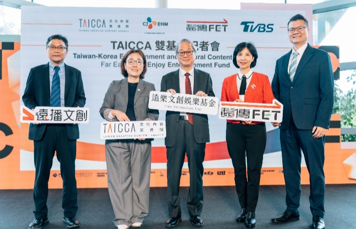 「台韓娛樂文化內容基金」由韓國娛樂龍頭 CJ ENM Hong Kong(CJ ENM HK)、文策院、遠傳電信及 TVBS 共同成立,總額達 9.6 億新臺幣。未來將聚焦兩大方向:一是影視音內容投資與合製,透過支持電影、戲劇及演唱會等多元形式,展現臺韓文化故事的多樣面貌;二是發行與行銷推廣,整合臺韓雙方媒體網絡與平台優勢,協助優質內容拓展海外市場。