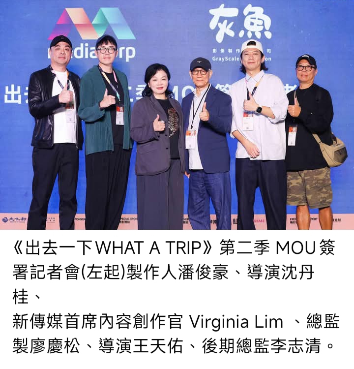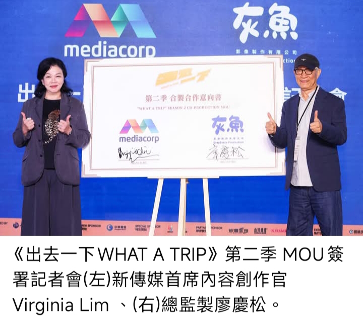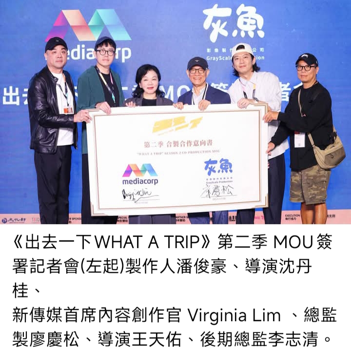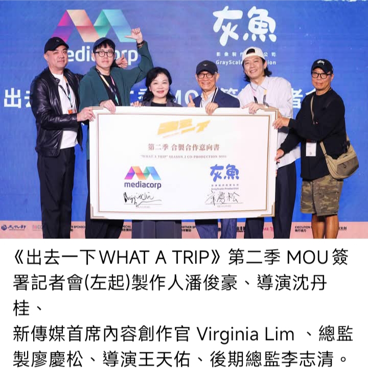 新傳媒首席內容創作官Virginia Lim表示:「與灰魚影像的合作是新傳媒拓展國際合作的重要里程碑。《出去一下 WHAT A TRIP 2》不只是大型綜藝節目,更是新加坡與台灣創作能量的結晶。我們希望透過真實旅程與鮮活故事,打造具全球共鳴的內容,並以啟發人心的旅程重新定義旅遊節目的魅力,同時,我們