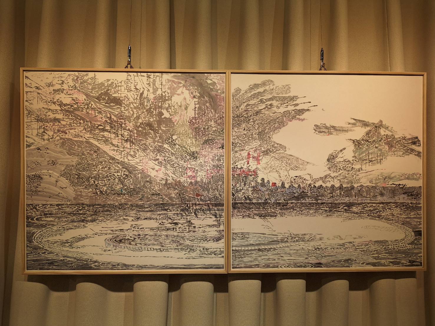 這次吳軒慧個展展出22幅水墨作品,包括:書法6件、繪畫16件,皆為嘔心瀝血經典佳作。其中3組雙聯幅水墨畫《想像之鄉:返鄉視角下的遷徙書寫I,II,III》為主視覺作品。成為眾人矚目的焦點,紛紛駐足觀賞,讚嘆頗有無可言喻的意境。