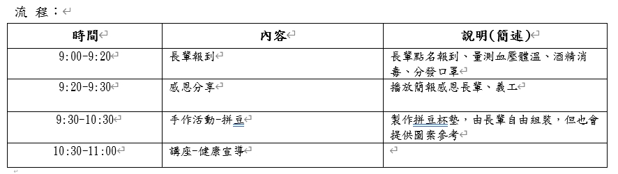 活動一開始會先讓大家回顧今年華山服務和辦理的各種活動照片,也感謝義工們的努力付出,再來是進行簡單的手作DIY活動,讓長輩們在義工的陪伴下,一起進行「拼豆杯墊」手作活動,發揮創意、完成專屬於自己的生活小物。活動最後會由同仁堂中醫醫療體系徐子靖醫師進行關節炎舒緩及中醫保健宣導,協助長輩了解日常保健觀念。