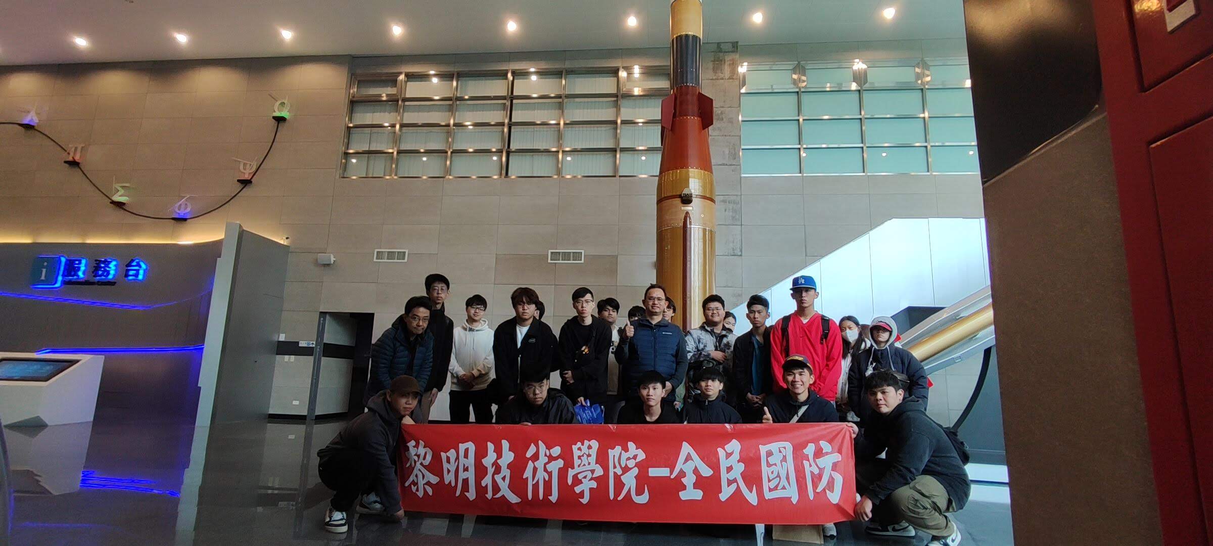 黎明技術學院為深化師生國防科技知識、強化全民國防教育向下扎根,於今日由曾若谷主任教官與生輔組長梁暐陳教官率領校內教職員一行,前往位於桃園龍潭的國家中山科學研究院展示館進行國防知性參訪活動。透過實地導覽與專業講解,讓參與教師與行政人員近距離了解我國國防科技現況與自主研發成果。