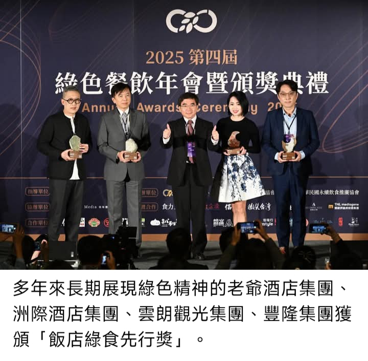 也因此,在困難重重之下依然願意加入綠食宣言、持續推動綠色餐飲、甚至延伸到旅宿產業的飯店集團,更顯現出何等用心與珍貴。因此今年特別頒發「飯店綠食先行獎」給多年來長期展現綠色精神的老爺酒店集團、洲際酒店集團、雲朗觀光集團、豐隆集團(依照筆劃多寡排序),現場四大飯店集團也簽下「綠食宣言」,承諾持續推動餐旅業的綠色行動。期許透過這些飯店集團的先行示範,引領更多飯店集團加入永續的行列。