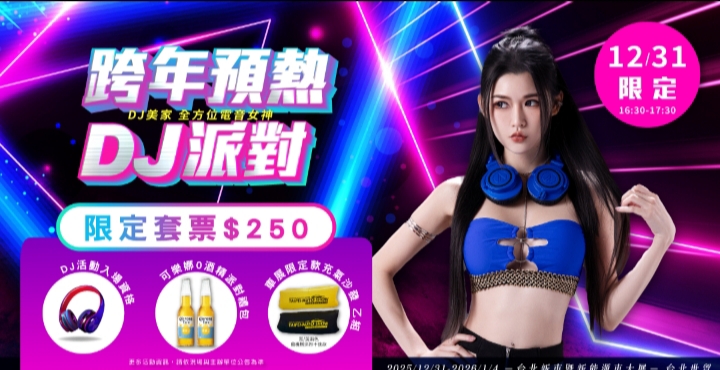 2026台北新車暨新能源車大展將於12月31日推出一日限定「跨年 DJ 派對」限定活動,打造全台唯一看車展、拿好禮、嗨跨年的盛大跨年新體驗!今年主辦單位首度與電音女神合作「DJ美家」,限量推出的「跨年 DJ 派對限定活動票」,只要250元(不包含車展入場票)即可擁有跨年DJ派對活動參與資格,並可獲得一份指定活動限定禮品。車展現場打造沉浸式舞台,讓觀眾在閃耀車款與震撼電音中一起暖身開跑、一路嗨到跨年倒數現場,提前引爆2026年的第一波狂歡熱潮,詳情請上官網查詢。