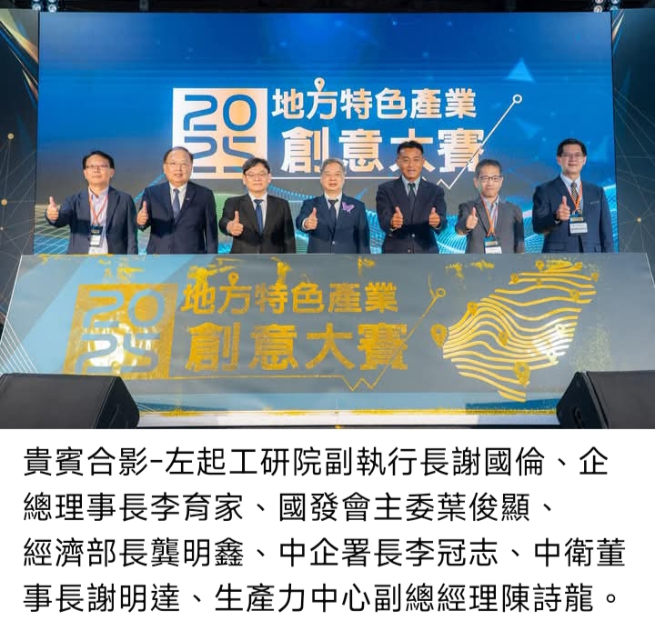 經濟部中小及新創企業署主辦的「2025地方特色產業創意大賽」於昨(17)日下午在華山文創產業園區盛大舉行頒獎典禮。本大賽由中研院、中衛發展中心等四大法人攜手全臺地方夥伴首度舉辦,目的在深度探索全臺368 個鄉鎮市區的地方產業DNA,以帶動地方產業創新與經濟永續發展。經濟部龔明鑫部長與國發會葉俊顯主任委員親自出席頒獎,表揚並肯定臺灣地方產業的創意與努力。