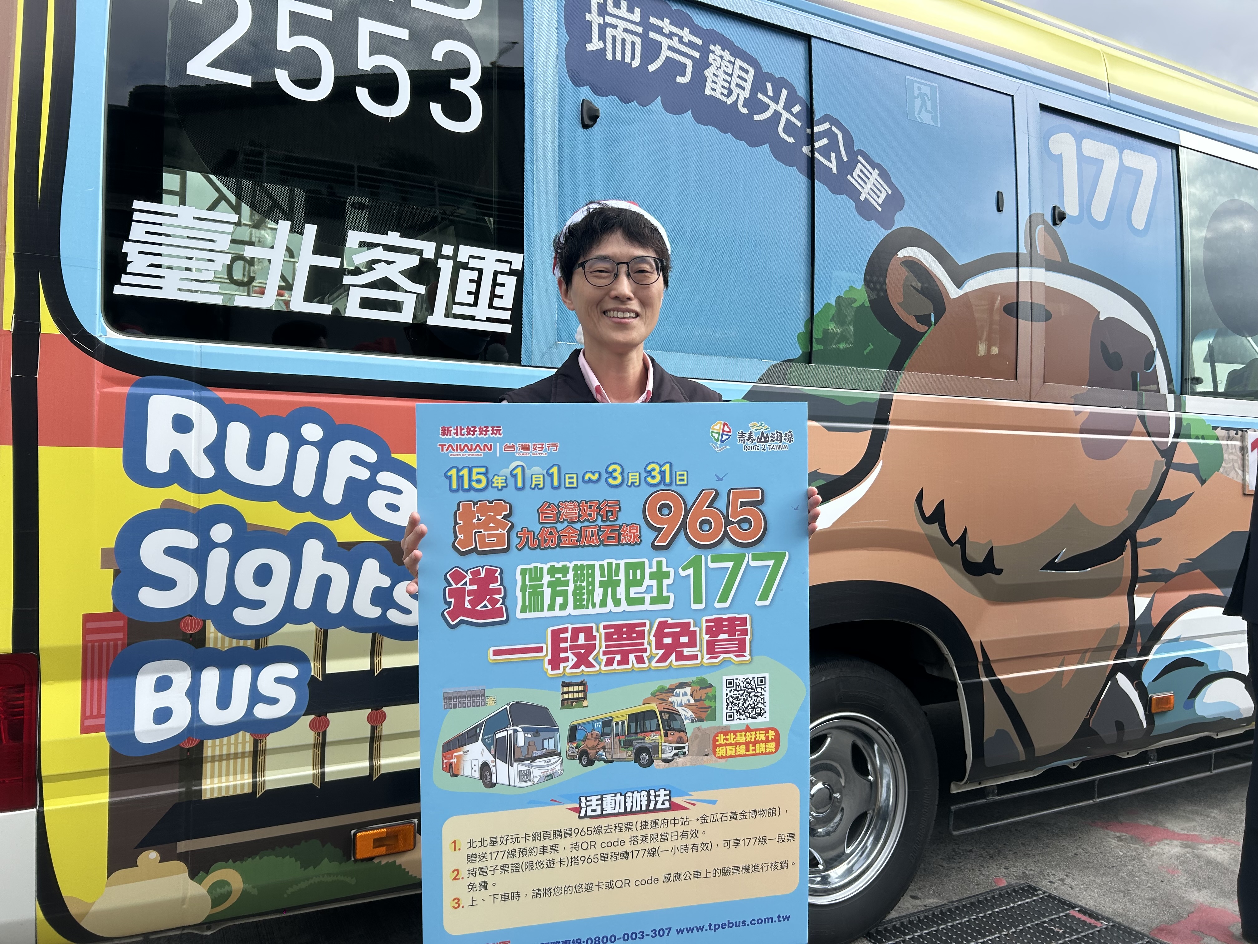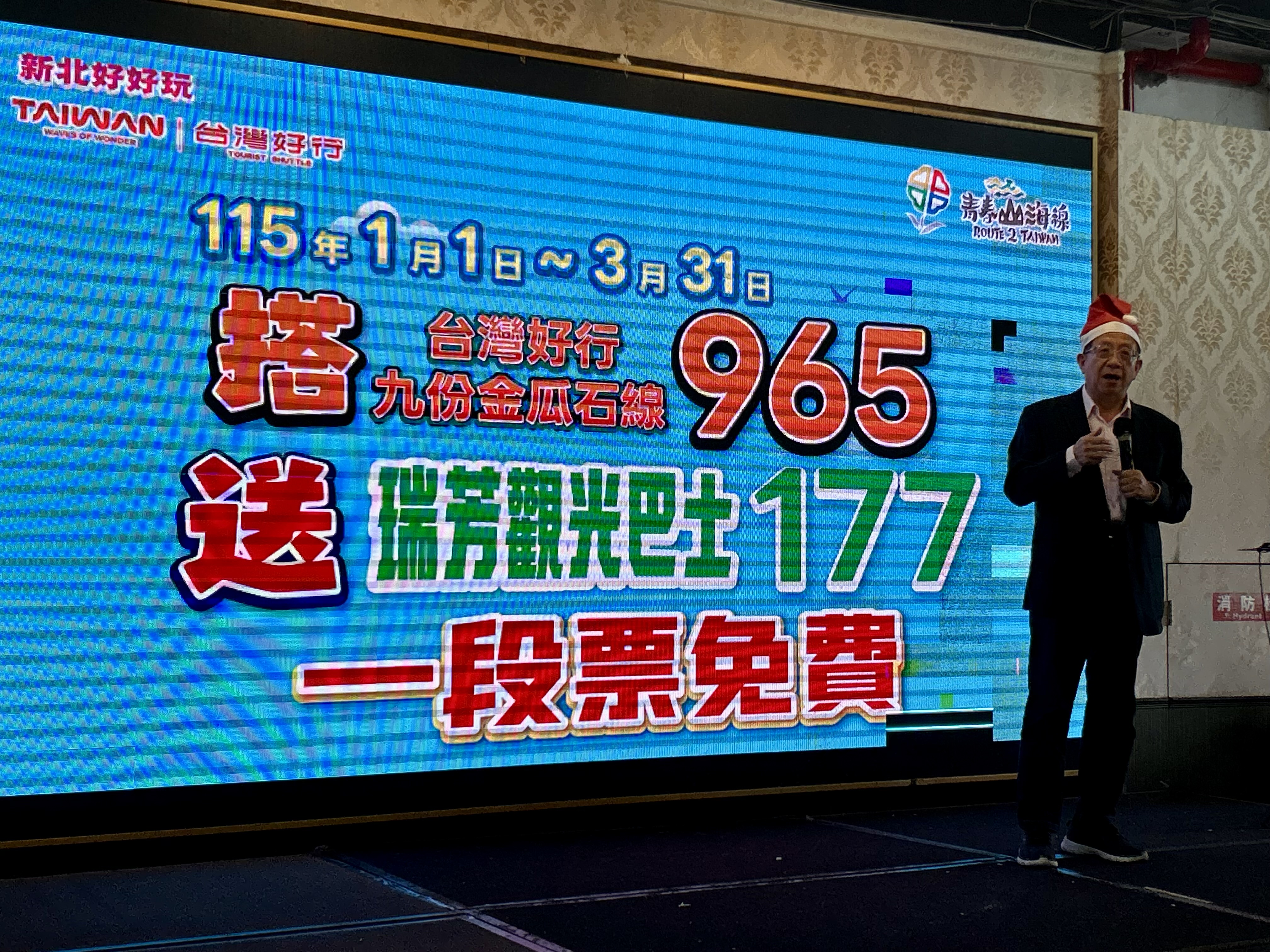 【林文強/新北市報導】「瑞芳」位於新北市東北角,三面環山、一面臨海,不但擁有九份、金瓜石等國際知名景點,也是深受國內、外國旅客喜愛的旅遊勝地。為鼓勵旅客使用公共運輸,國立陽明交通大學北部區域運輸發展研究中心王晉元教授與閻姿慧教授,執行偏鄉公共運輸結合觀光服務計畫,輔導臺北客運優化新北市177瑞芳觀光巴士路線,並與該公司合作推出搭「965台灣好行九份金瓜石線」送「177線一段票」試辦方案,該方案自115年1月1日起試辦三個月(至3月31日止)。