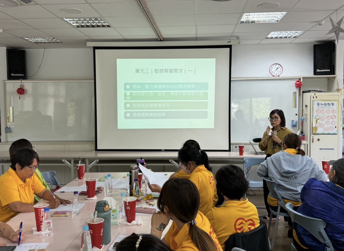 為了讓服務團隊更能察覺家庭中隱藏的疲累,並及時給予協助,介惠在 2025 年特別針對第一線服務夥伴與相關工作者舉辦「陪伴心理學」工作坊,邀請具實務經驗的社工師與心理專業講師,強化情緒察覺與互動溝通能力,透過專業提升,讓夥伴們能更精準地辨識並回應照顧者未出口的呼救訊號。