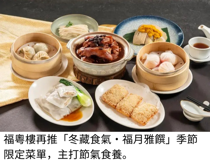 因應現代人越來越注重養生,福容桃園機捷A8店福粵樓,繼11月推出『冬令滋補 養生煲湯』受到相當好評,即日起至2026年3月15日再推「冬藏食氣・福月雅饌」季節限定菜單,主打以節氣食養概念、演繹廣式佳餚,首先『薑黃油雞腿』金黃油雞腿、加入薑黃粉與新鮮中薑調味,溫潤而不刺激,暖身又醒胃。『何首烏藥膳豬腳』嚴選豬腳加入黑豆與何首烏細火慢熬,湯頭甘甜,搭配麵線食用、溫潤飽足。接著是三款全新亮相港點,『香麻蝦多士』以吐司為基底,鋪上蝦仁與花枝打成的鮮美海味餡,外酥內嫩; 『百花蝦餃 』薄透彈嫩餃皮包裹爽脆蝦仁與細膩帶子,層次立體、充滿鮮味,另外還有『三絲腸粉』、『上海韭菜蒸餃』,為今冬注入暖食新亮點。
