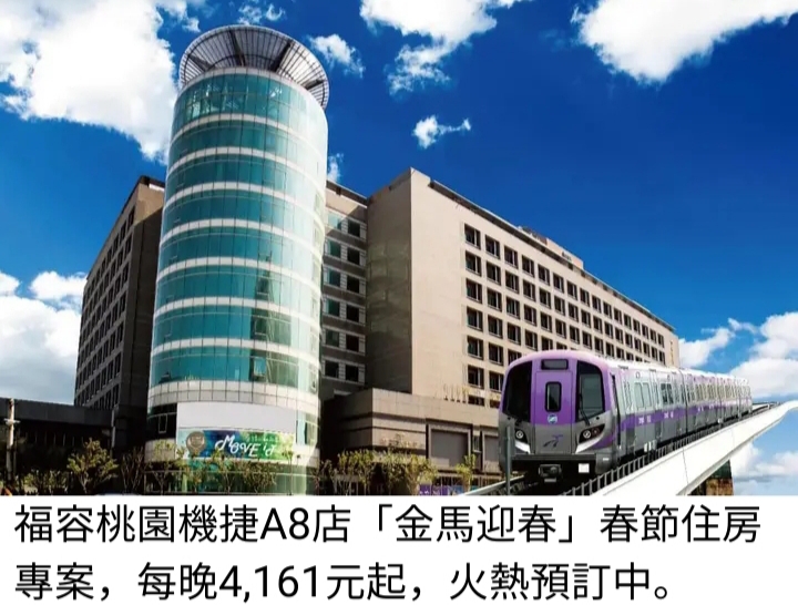 2026年春節連假長達9天,推升國人出國意願,影響所及,不但2026年春節機票買氣年增逾兩成,同時也帶動機場接駁型飯店需求成長。福容大飯店桃園機捷A8店座落於桃園機場捷運A8站,不但具備機捷半小時直達桃園機場的交通優勢,從飯店到A8站票口經由室內連通步道,步行時間更是一分鐘可達,加上鄰近林口長庚商圈及樓下即為環球購物商場的強大生活機能,更讓福容桃園機捷A8店成為機場接駁飯店的首選。針對2026春節2月16日至21日,飯店也推出「金馬迎春」春節住房專案,每晚4,161元起,不但兼享便利交通與舒適住宿,還加贈迎春贈禮,包括A8熊寶寶、福隆海洋溫泉入浴粉,與春節期間主打度假路線的國內飯店有別,強調滿足旅客出國前後放鬆與便利需求。