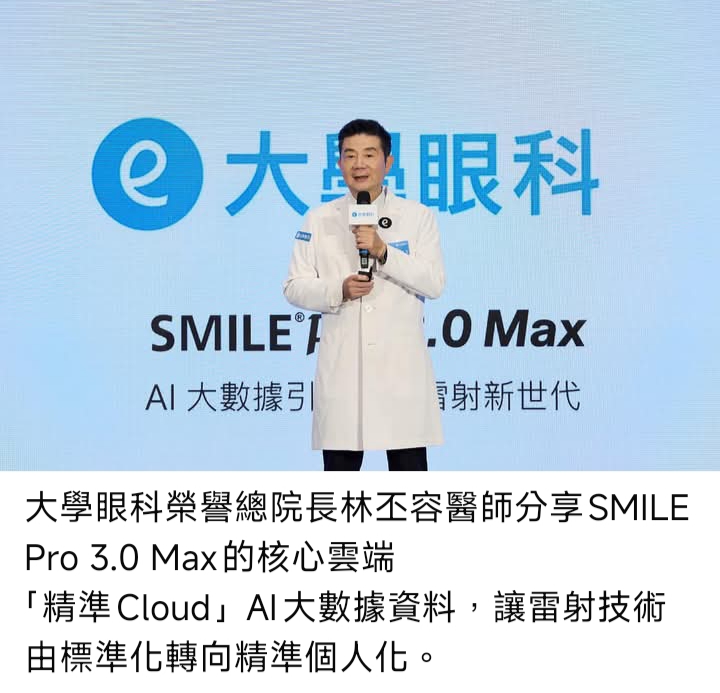微創 SMILE Pro 大學眼科「3.0 Pro Max」新技術 台灣近視雷射新里程 「i精準Cloud」整合13萬實例 Al個人化大數據再升級