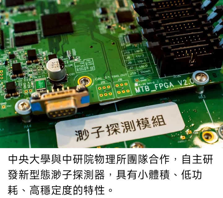中央大學物理系郭家銘教授表示,渺子(Muon)是宇宙射線與地球大氣層作用後產生的基本粒子,具有極強的穿透力,能穿透數百公尺厚的岩石。該團隊採用閃爍體作為渺子偵測元件,搭配「矽光電倍增器(SiPM)」進行渺子的計數與量測,組成小體積、低功耗、高穩定度的感測系統,不僅適合長時間野外運作,也大幅降低設備體積與維護門檻,是讓渺子成像術在台灣成功「落地」的關鍵。