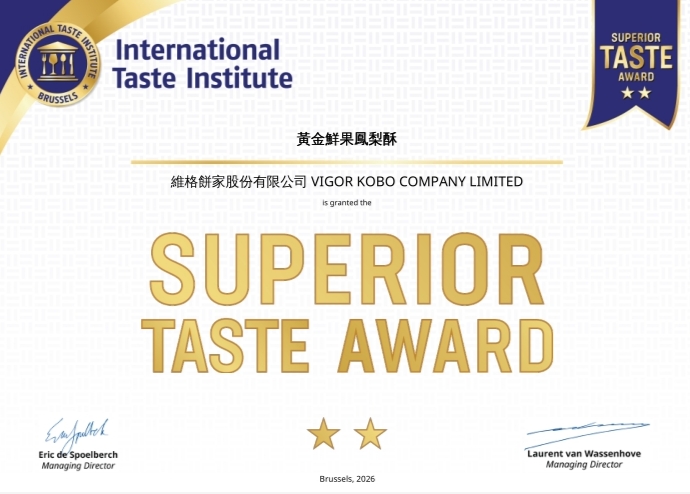 【新北訊】深耕臺灣糕餅文化超過三十年的維格餅家,再度以創新實力站上國際舞台。旗下明星產品「黃金鮮果鳳梨酥」榮獲International Taste Institute (ITI)國際美食大獎肯定, 象徵臺灣在地水果結合專業製餅工藝的成果,成功獲得國際評審一致青睐,為臺灣伴手禮再添一項重要里程碑。