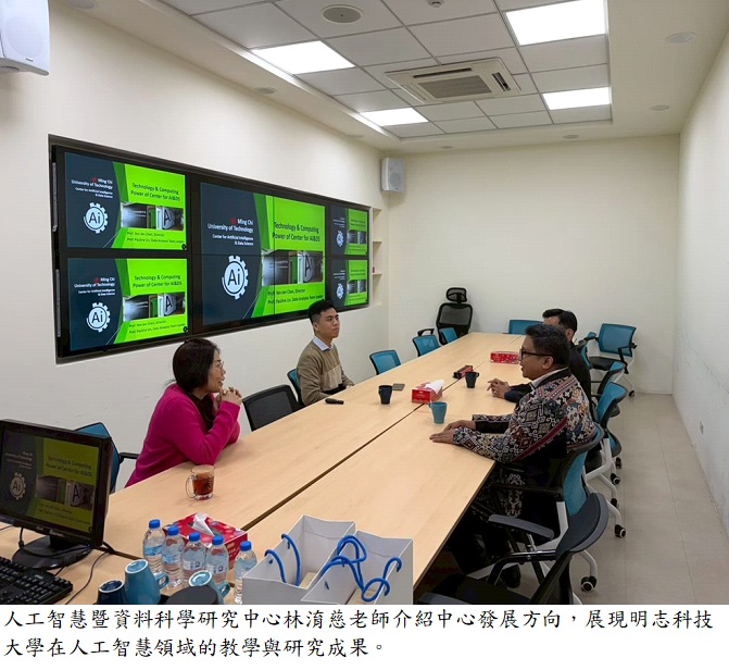 訪問團行程首先參觀校史室,深入了解明志科技大學的創校精神、辦學理念與發展成果;隨後於交流餐敘中,雙方就學生修業制度、課程銜接與未來合作方向進行意見交換,為雙聯學程的順利推動奠定共識。下午行程由教師帶領參訪行銷與設計學士學位學程,介紹課程架構與實務導向教學特色,並前往人工智慧暨資料科學研究中心,分享學校於AI與數據應用領域的研究成果與發展方向,讓來訪貴賓更全面了解明志科大的教學與研究能量。