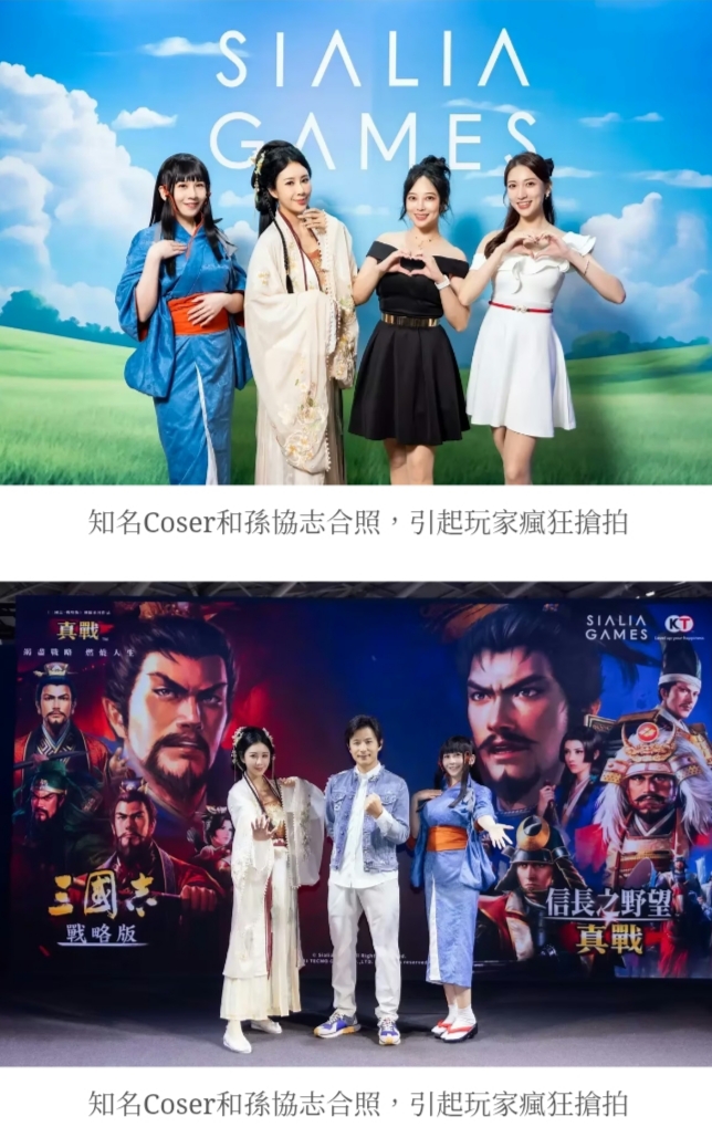孫協志現場震撼演繹了《三國志・戰略版》經典熱門主題曲〈戰記〉,熟悉的旋律瞬間點燃全場玩家的鬥志,臺下應援聲不絕於耳。演唱完畢後,協志哥更親自走訪攤位體驗各項活動,不僅在「SialiaGames珍藏藝廊」駐足良久,更參與「策略考驗」與幸運玩家近距離互動。並與人氣Coser喵少Athena、張語嵐合影留念,更引來無數玩家瘋狂搶拍,將今日的展場氣氛推向最高峰。