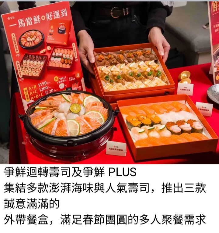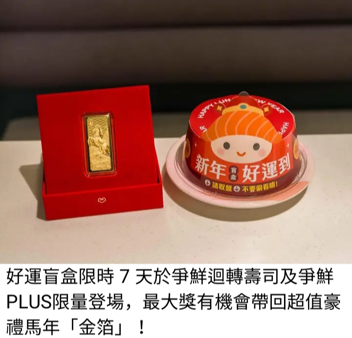 即日起至 3 月 2 日,多達 11 款新品於爭鮮迴轉壽司及爭鮮 PLUS 限定開賣;2 月 3 日起限時加碼推出「好運盲盒」,每盤售價 30 元,可直接從迴轉台輕鬆拿取,最大獎有機會抽中「金箔」豪禮,全台門市限量販售,售完為止。蒐集金馬年好運勢,就到爭鮮!
