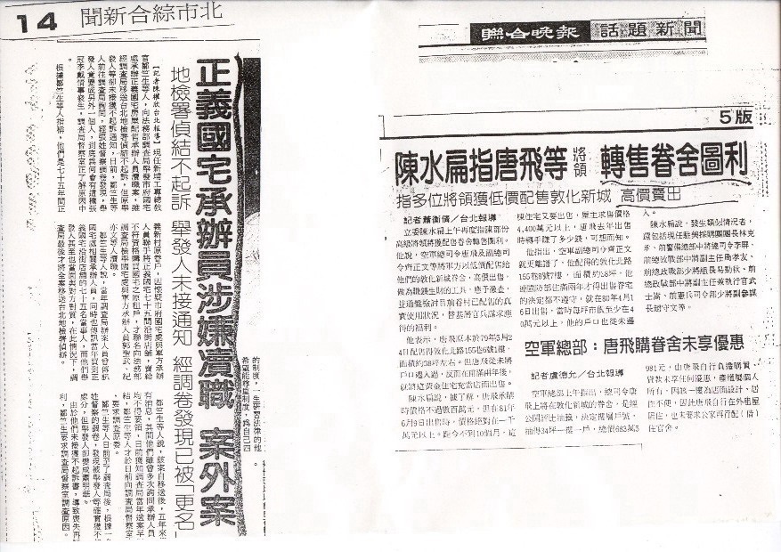 市長您好: 台北市忠孝東路三段正義國宅(忠勇新城)改建舞弊案,市府及軍方原眷戶眷村改建後精華舗面96戶,被不法集團盜賣,但市府政風處從78年以來,均消極處理,既不据理力爭,也不輔導本人法律訴訟,衹讓本人孤軍奮戰... 市府似乎已放棄了舖面所有權... 如果案情有天真相大白,希望市府不要爭店舖所有權... 謹呈 台北市政府 陳情檢舉人:鄒筑生上 0721 正本:台北市議員 副本:各媒体 ............................................. 台北市府政風處早知「國軍老舊眷村重建方案」中,原眷戶如原舍臨街,原有舖面經商者,改建後可分回廿四坪店面住家一戶,但此原公文被行政院、國防部、內政部、省府、市府,及市議員周陳阿春等人,認為有利可圖,竟偽造行政院、內政部同文號之公文(內容相反): 偽造成「舖面為省府所有,應公開標售,錢歸省府...」後: 再以「五鬼搬運」手法(用合法之原眷戶申請,以造價獲得,再由軍,政要員瓜分,或加價轉賣給冒充原眷戶的非法人員,貪瀆金額數十億元。 (全省800個眷村改建後舖面均如是,貪瀆金額達數百億,