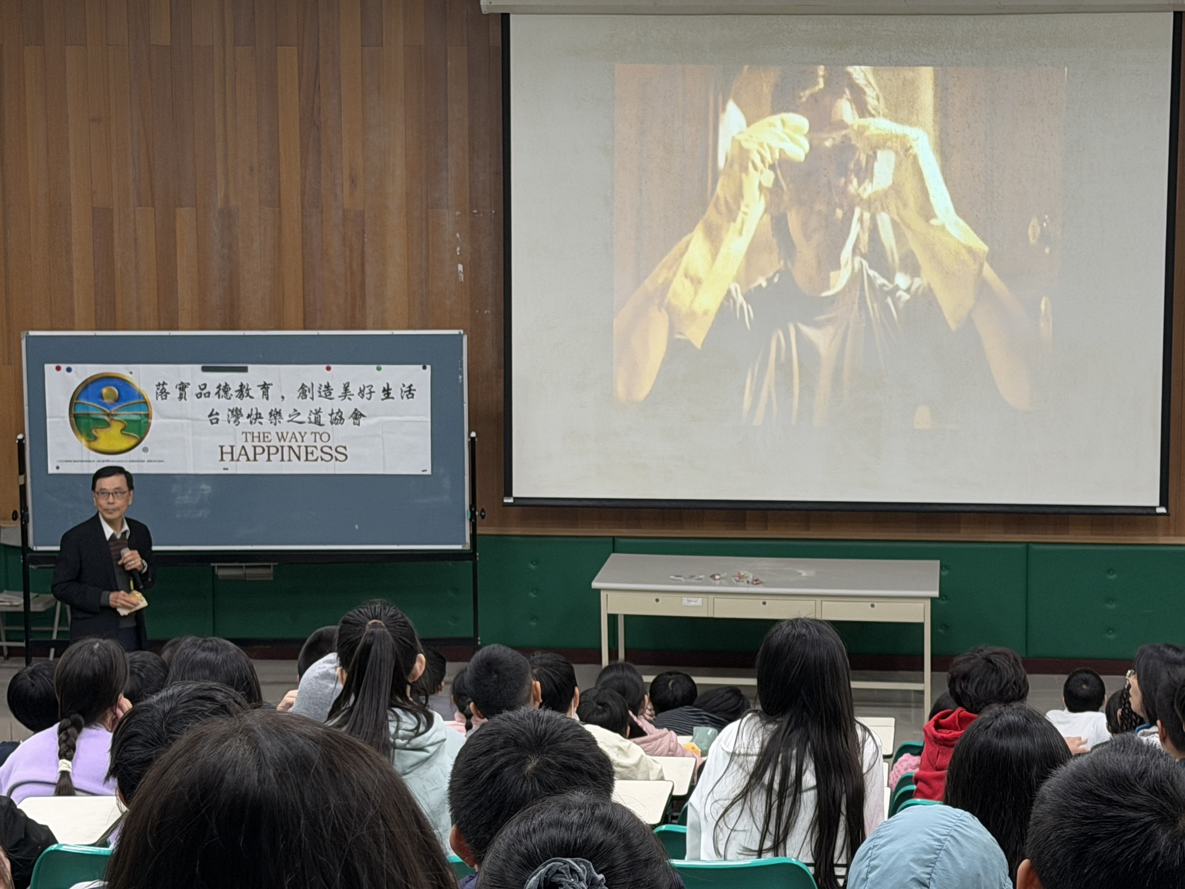 本次系列講座由青潭國小訓育組長精心策劃,旨在將品德觀念與校園生活接軌。快樂之道協會針對不同年級段學生的理解能力設計課程,內容取材自美國教育家 L. 羅恩賀伯特所撰寫的《快樂之道》,以貼近生活的道德準則作為引導:低年級學生透過色彩豐富的影片與繪本,學習基礎的生活規範;中高年級則深入探討如何營造有品的校園文化,並建立健康的人際關係。張執行長指出,品德不應只是課本上的標語,而是每一位學生在日常選擇中展現出的修養,透過這套生活準則,能幫助孩子建立自律與自信。