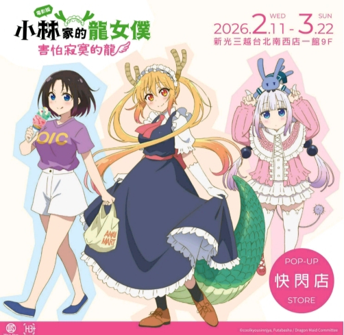 由「重星戰略」、「像素匯」聯手「H3+Studio滬睿國際」共同策劃並推出的全新策展品牌「燦々堂 SANSAN DO YOU」於2月11日至3月22日新光三越台北南西店一館9F推出結合日本三大人氣動畫IP《靈異教師神眉》、《光逝去的夏天》、《小林家的龍女僕》所共同打造的動漫沉浸式主題快閃活動;此展為海外首展,並將首站選定在年輕人匯集的中山商圈,為即將到來的春節假期帶來新一波動漫熱潮!