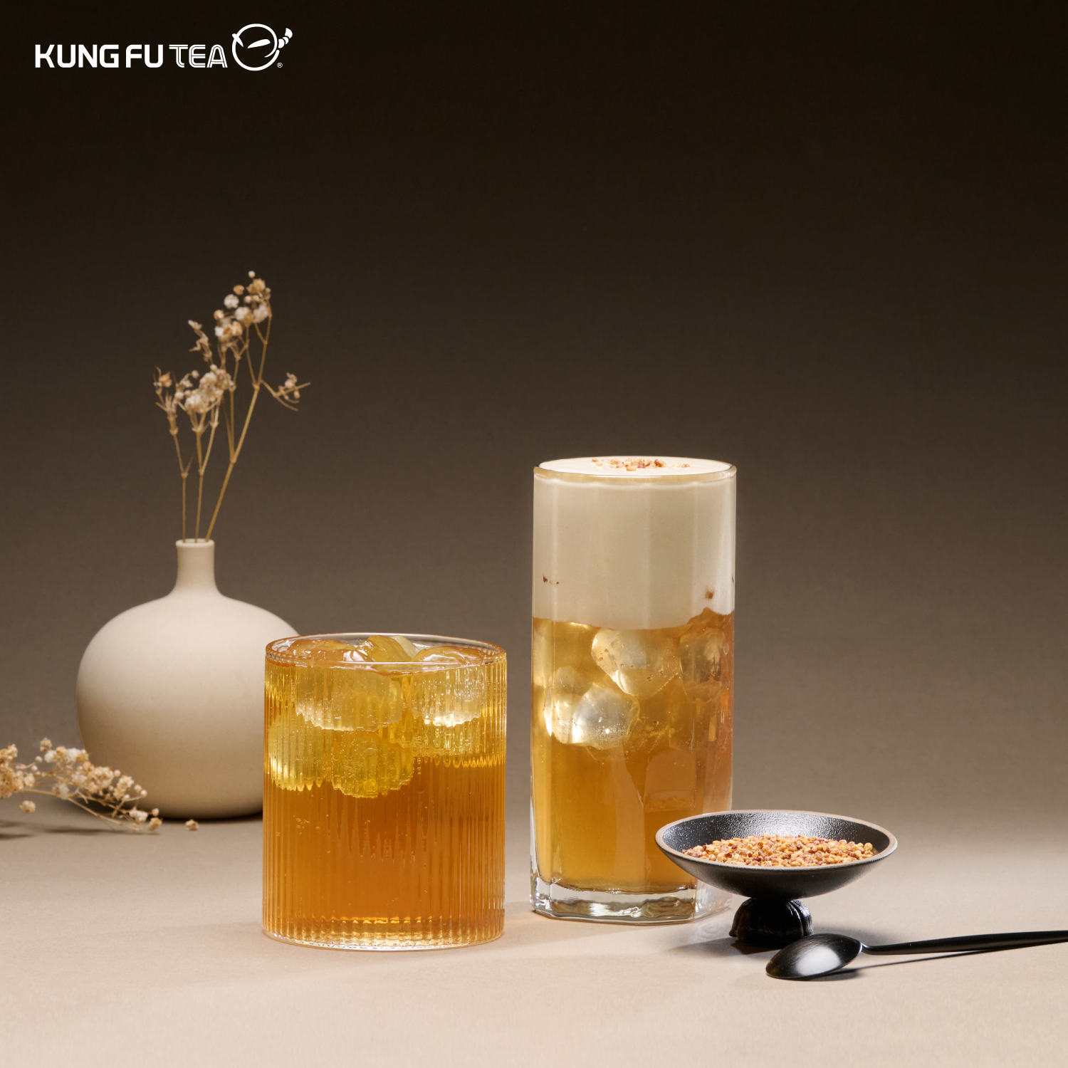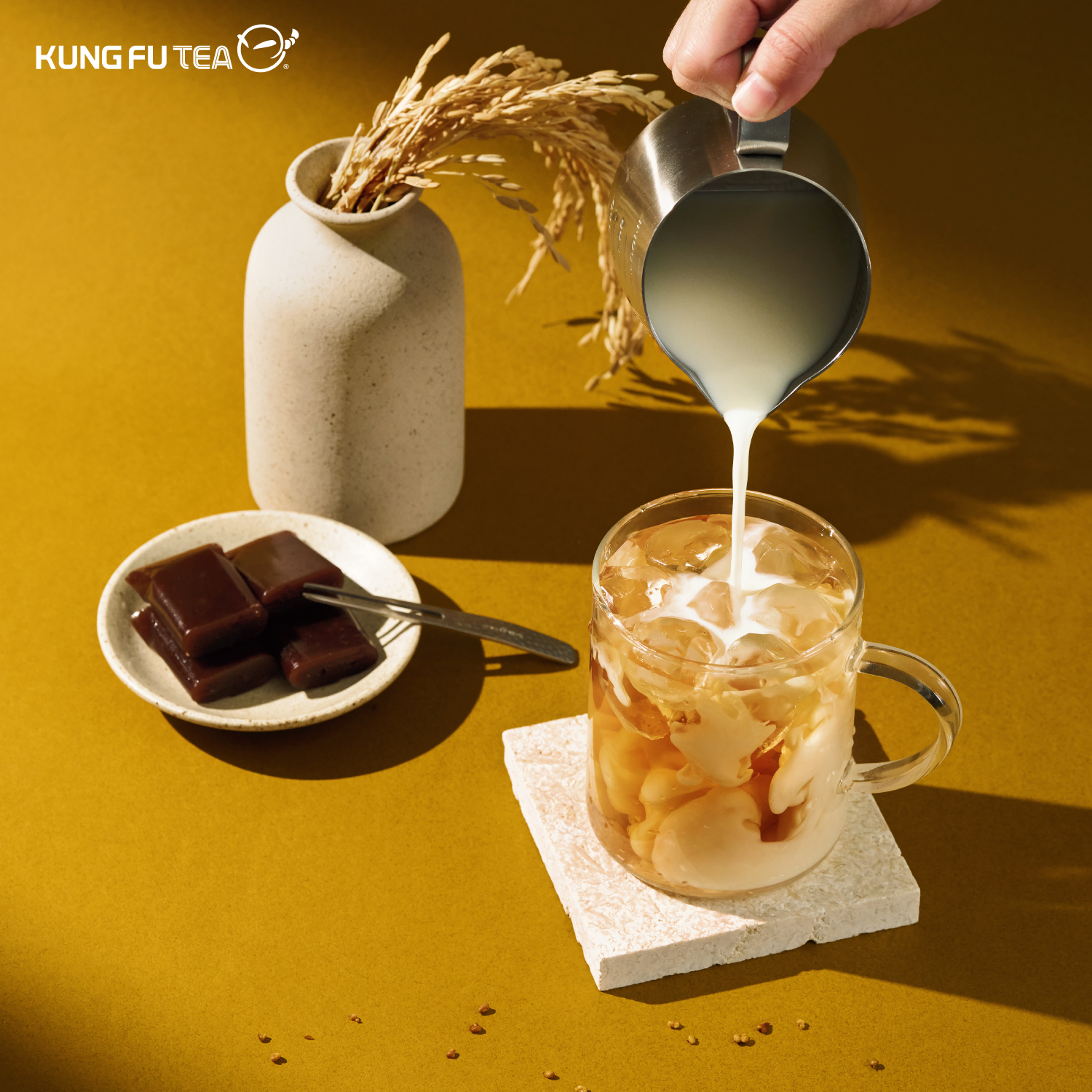 ▲「金穀蕎麥」搭配鮮奶/奶精做成奶茶,香氣層次令人難忘。(圖/KUNG FU TEA功夫茶提供)