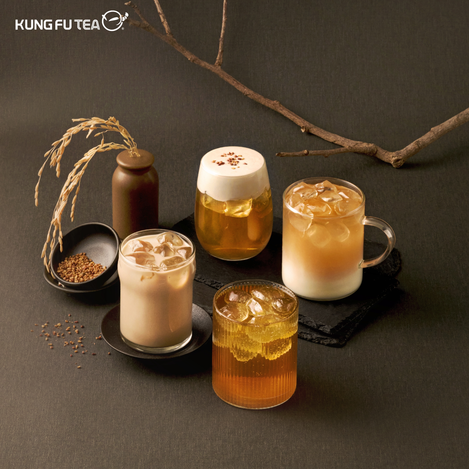 ▲「金穀蕎麥系列」推出多款飲品供消費者選擇。(圖/KUNG FU TEA功夫茶提供)