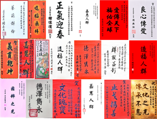 圖四:各界致贈中堂、墨寶、賀函,為太極門氣功養生學會60週年暨屏東道館館慶、新春茶敍獻上祝福。