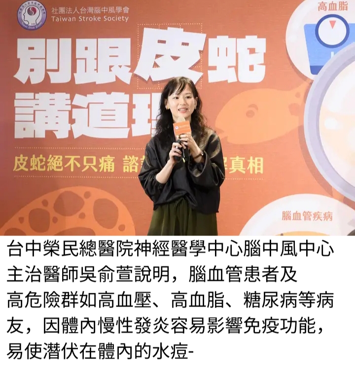 民眾日常也應維持良好的生活習慣,保持均衡飲食、規律運動及充足的睡眠,幫助維持免疫力,別讓不講理的皮蛇,加劇腦血管疾病的苦!