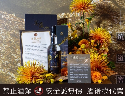 《千金藏》嚴選金城廠與金寧廠之優質高粱酒基為核心,經匠心調和後灌裝於特製1,000公升陶罈,並靜置於金門特有花崗岩坑道中,在終年溫濕適宜且避光穩定天然環境下進行深度「熟陳醇化」;陶罈微呼吸,使酒液在歲月中緩慢轉化,讓酒體兼具老酒深厚底蘊與新酒靈動穿透感,呈現芳香綿甜、層次堆疊風味表現;每一次開罈,都是時間所成就風味鉅獻。