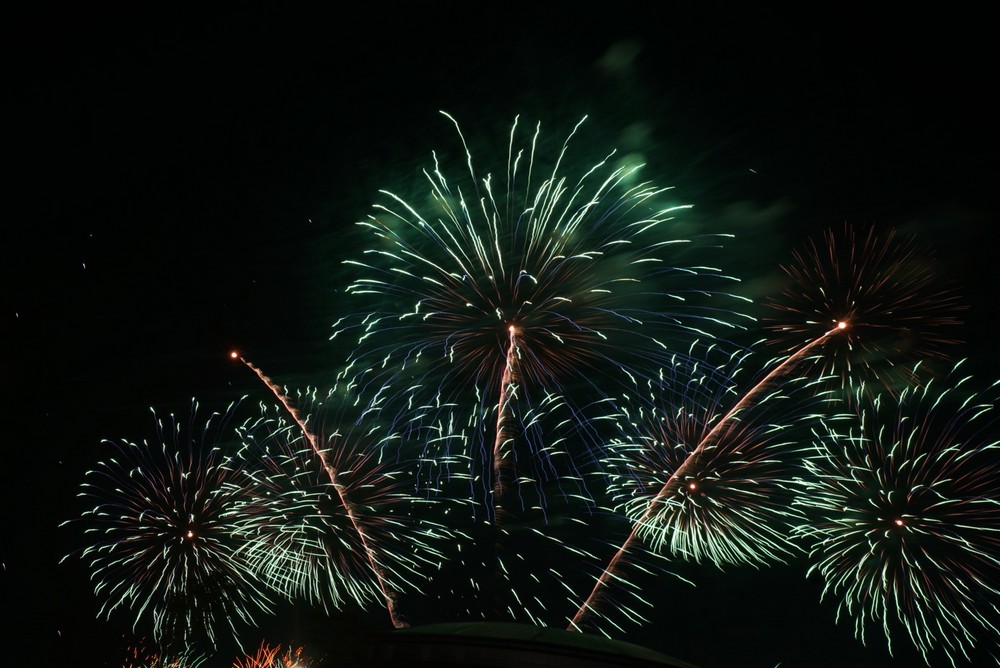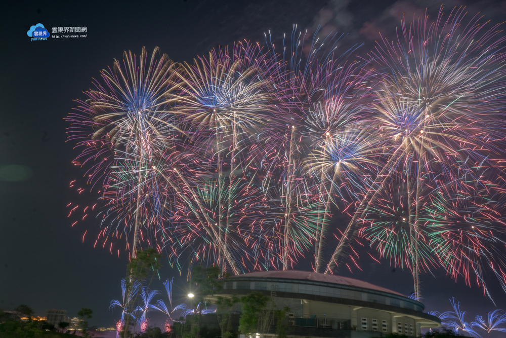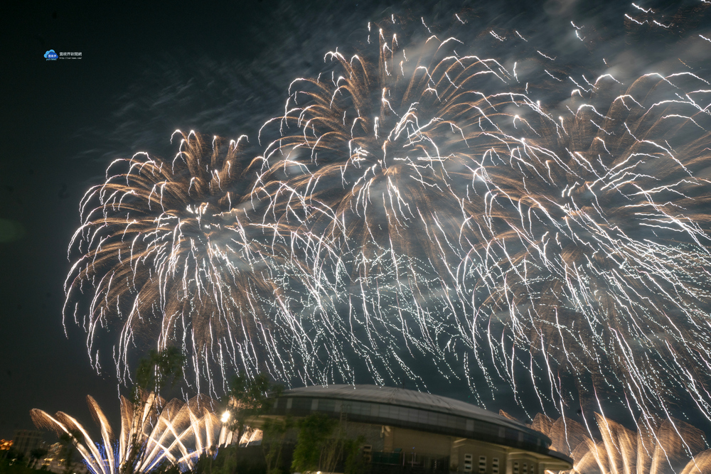 晚間8點40分登場的煙火與無人機展演「光有回聲」,整合煙火與無人機進行空中同步展演,依循音樂節奏精密編排,打造「#天空雙舞台」的立體展演形式。超過2,500發的煙火,透過高、中、低空層次配置,以五色瀑布型奥落葉型花色為主軸,呈現流動且富層次的視覺效果;300架無人機,編排出美術館外觀、金牛角及三鶯線列車等動態圖像,透過光影交織,呈現具有情感深度與象徵意義的夜空藝術饗宴。