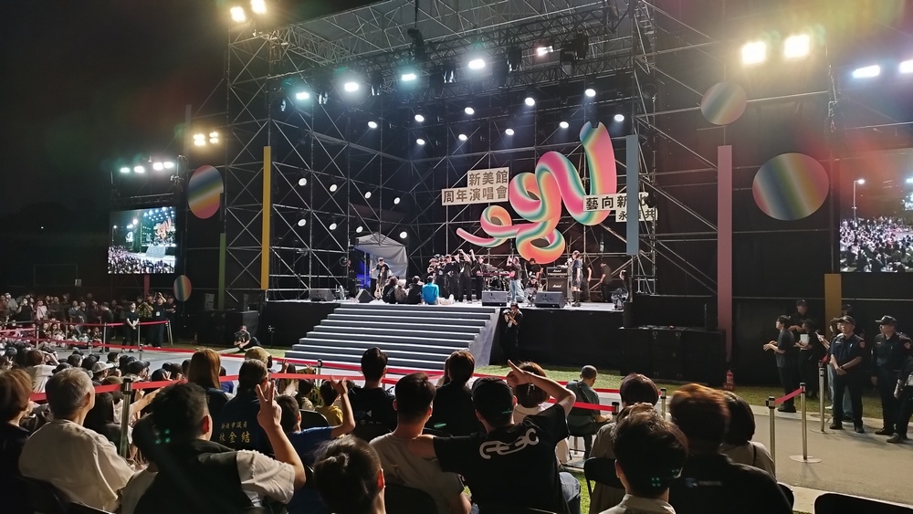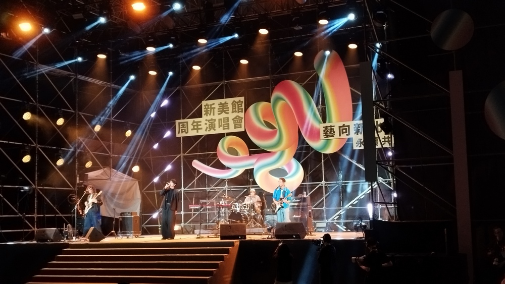 新北市美術館4月26日迎來開館周年系列活動第二天,活動現場熱鬧非凡。·晚間7點演唱會由盗魂爵士樂團開,Gummy B、宇宙人接力開唱。